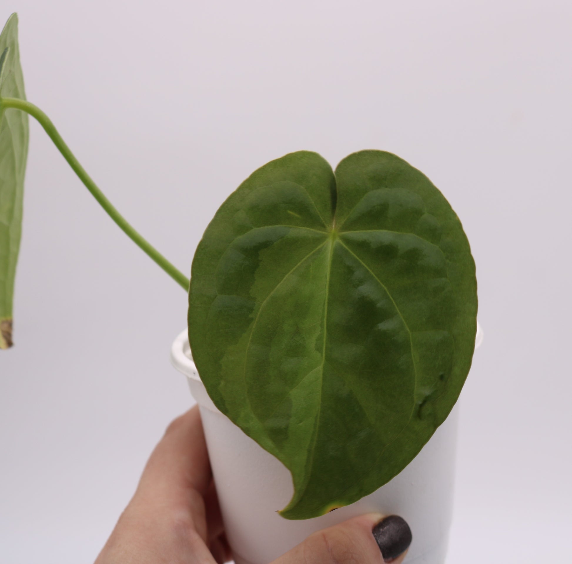 Anthurium David Portilla Dreams showing lovely variegation on leaves with different tones of green and yellow. A pillowy leave with velvety green hues this anthurium is just memorizing.